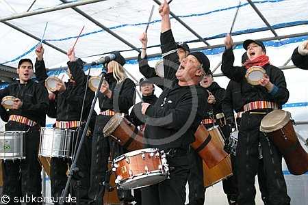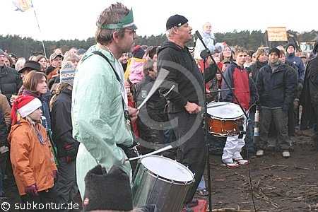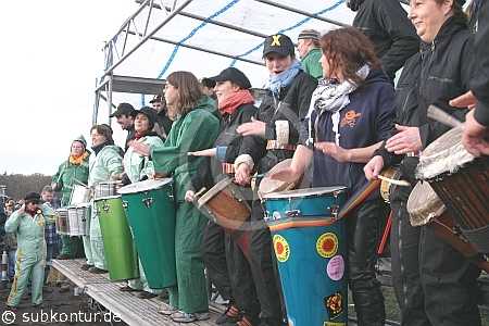 Für gute Stimmung unter den Anwesenden sorgten die beiden Trommlergruppen "Samba Einsatz Kommando" (SEK) aus dem Wendland und die Gruppe "Doukkali"aus Frankreich.