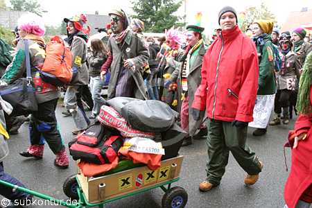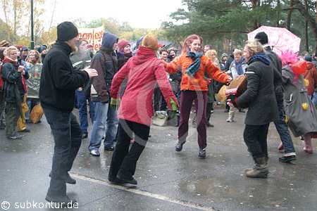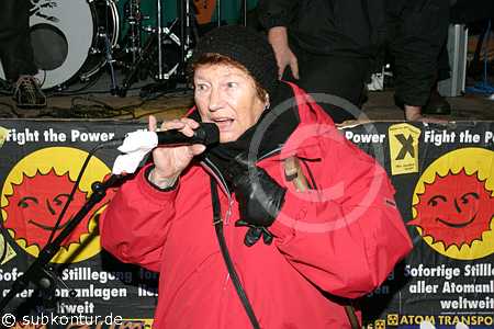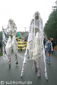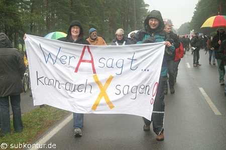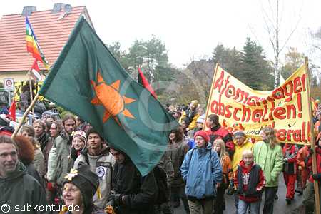 Bunt, kreativ und humorvoll gestaltete sich der Umzug zum atomaren Zwischenlager. In den verschiedenen Redebeiträgen - auch von Gastrednern - kam jeweils eine große Entschlossenheit im Widerstand gegen die Kernenergie wie auch gegen ein atomares Endlager in Gorleben zum Ausdruck. Insbesondere wurde auch betont, dass jeder seinen persönlichen Ausstieg aus der Atomenergie vollziehen kann, indem er den Atomstromern die Rote Karte zeigt und zu einem Ökostromanbieter wechselt.
