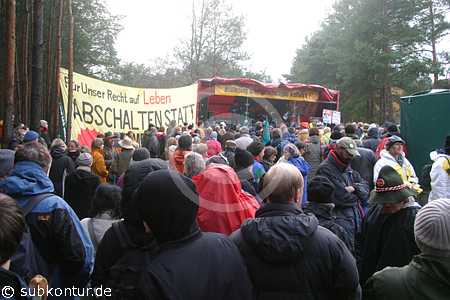 Nachdem verschiedene Politiker aus der CDU öffentlich den Atomkonsens in Frage gestellt haben und Stromkonzerne wie RWE sowie E.on und Vattenfall Fakten schaffen wollen, indem sie Laufzeitverlängerung für die Altreaktoren Bilblis A und Brunsbüttel beantragten, ist ein Sturm der Entrüstung und des Widerstands durch Teile der Öffentlichkeit gegangen. Vor diesem Hintergrund stellte sich die spannende Frage, ob die versuchte Aufweichung des Ausstiegs aus der Kernenergie ein größeres Protestpotential bei dem Castortransport nach Gorleben mobilisieren würde, zumal dieses in den letzten Jahren geringer geworden war. Die einzelnen Widerstandsinitiativen hatte ihre Mobilisierungsbemühungen gegenüber den Vorjahren erheblich intensiviert. Demonstrationen gegen die Kernenergie waren in Biblis und Brunsbüttel vorausgegangen. So rechnete man zur Auftaktdemonstration in Gorleben am 11. November 06 mit 3000 DemonstrantInnen und war erstaunt und erfreut zugleich, dass es dann doch 6000 wurden, die hier öffentlich ihren Protest und Widerstand zum Ausdruck bringen wollten und damit ein deutliches politisches Zeichen setzten.