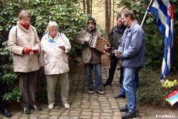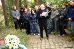 Volkstrauertag - Gedenken an Kriegsverbrechen in LüneburgAm 16. November fand am Ehrenmal im Lüneburger Forst Tiergarten eine Gedenkveranstaltung statt. Wird überall am Volkstrauertag in ungezählten Veranstaltungen der im Zweiten Weltkrieg gefallenen Soldaten gedacht, so setzte diese Veranstaltung einen ganz anderen Schwerpunkt: Sie widmete sich denjenigen Menschen, welche sich gegen den Nationalsozialismus stellten und aus diesem Grunde oder auch wegen ihrer "Rasse" in Konzentrationslagern litten und dort ihr Leben ließen. Im Forst Tiergarten liegen 256 KZ-Häftlinge begraben, welche in den letzten Kriegstagen von Wilhelmshafen nach Lüneburg transportiert worden waren. Manche starben schon auf der Fahrt aus Entkräftung, andere wurden Opfer eines Angriffs britischer Bomber auf Lüneburg. Diejenigen, welche beides überlebten, wurden von ihren Bewachern (Angehörige der SS und der Wehrmacht) ermordet. Das damalige schreckliche Geschehen brachte Immo de Vries den etwa 20 Anwesenden nahe, als er einen Text aus seinem Buch „Kriegsverbrechen in Lüneburg“ vortrug. Diese wurden davon sichtlich bewegt. Helga von der Hellen trug das Gedicht „Kollektivschuld“ von Wolfgang Bittner vor, welches die Einstellung ihrer Generation zu den damaligen Verbrechen deutlich machen sollte. Das Gedenken wurde mit einem weiteren Vortrag „Gespräch mit einem Überlebenden“ von Erich Fried ergänzt. Bewegend gestaltete sich auch der Abschluss der Gedenkveranstaltung, als die Anwesenden das Lied „Wir sind die Moorsoldaten“ anstimmten, das von Werner Hopfgart auf der Ziehharmonika begleitet wurde. An der Kranzniederlegung neben der Gedenktafel beteiligten sich auch Schülerinnen einer 9. Klasse der Hauptschule Kaltenmoor mit einem Gesteck. Peter Asmussen vom VVN bat die Anwesenden, sich an dem Protest gegen die für den 29. November in Lüneburg geplante Demonstration der NPD zu beteiligen. Es sei unerträglich, wenn Nazis an einem Gedenkstein vorbeimarschierten, der an die Deportation jüdischer Mitbürger in der NS-Zeit erinnert. |