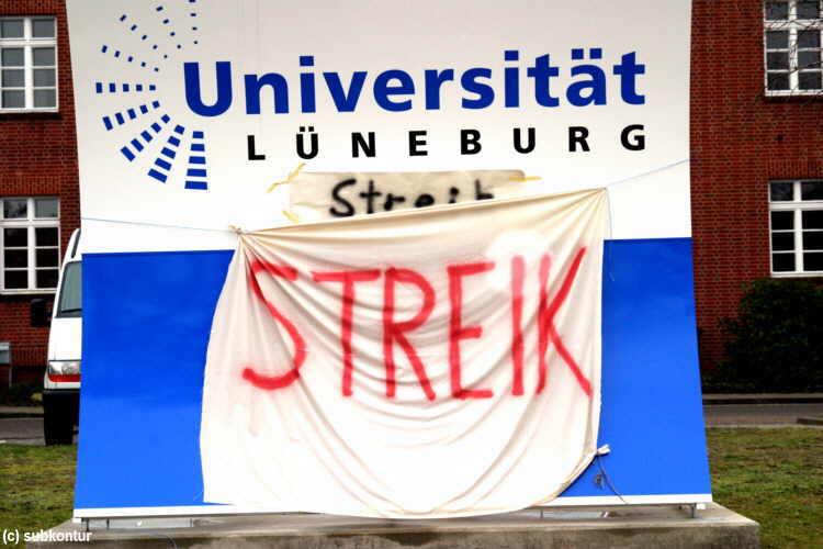 Nr. 1 Die Vollversammlung der Universität Lüneburg hatte am 19.01. einen einwöchigen Warnstreik mit großer Mehrheit beschlossen. Etwa 1500 Studierende waren anwesend. © Gisela und Joachim Petersen, subkontur