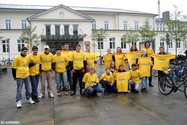 Nr. 1 Die Klasse 8/1 der HS Kaltenmoor wartet auf den Staffelstab aus Dannenberg © Gisela und Joachim Petersen, subkontur