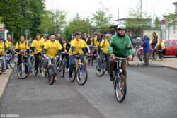 fotografie / presse-archiv© Gisela und Joachim PetersenKontakt: siehe Startseite STARTSEITE Klimastaffel 2004 auf Tour durch alle Bundesländer - eine Klima-Bündnis-AktionMitmachen, gemeinsam ein Zeichen setzen für den Klimaschutz und den Einsatz erneuerbarer Energien: das können alle und wollen viele innerhalb der nächsten 3 Wochen (10. Mai -1. Juni).Auch Lüneburg ist dabei mit einer Fahrradstaffel. - Treffpunkt ist der Lüneburger Bahnhof am 12. Mai, 11.00 Uhr. Auf dem Bahnhofsplatz warten SchülerInnen der Klasse 8/1 von der Hauptschule Kaltenmoor auf den Staffelstab aus Dannenberg. In ihren leuchtend gelben Klimaschutz-T-Shirts gruppieren sie sich gerne für ein Foto. Und bitte noch ein Foto - die Fahrräder sollen doch mit aufs Bild. Schnell werden die abgestellten Drahtesel geholt. Das Engagement für eine gute Sache ist zu spüren. Ein 3-Liter VW Lupo - ein mit Rapsöl betanktes Auto aus Dannenberg - trifft ein. Der Fahrer Dieter Schaarschmidt, Überbringer des Staffelstabes wird von den SchülerInnen und den anwesenden Mitgliedern des Umweltausschusses der Stadt, Studierenden und Mitarbeitern der Stadtverwaltung umringt. Ein Transparent wird entfaltet, Andrea Schröder-Ehlers, Fachbereichsleiterin der Stadt, fährt mit ihrem Fahrrad vor und nimmt den durch das heruntergekurbelte Autofenster gereichten Stab entgegen. Dann wird aufgesessen, und ab geht's in Begleitung eines ebenfalls radelnden Polizisten in die Stadt zur Wasserkraftanlage an der Ilmenau und zur Fotovoltaikanlage der katholischen Kirche St. Marien. Nach diesem informativen Zwischenstopp in Lüneburg wurde der Stab von Sebastian Bathiany zur Weitergabe nach Hamburg gebracht. Der Startschuss zur Klimastaffel 2004 ist am 10. Mai in Kiel gefallen. Jeder Beitrag zur 3600 km Staffelroute von Kiel über die Landeshauptstädte der 16 Bundesländer bis nach Bonn ( Laufen, Radeln, Skaten, Reiten, Rudern, Segelfliegen...) ist willkommen. Auf dieser Strecke wird ein Staffelstab mitgeführt, der die Klimastaffel-Deklaration enthält, die in den Landeshauptstädten von den jeweiligen UmweltministerInnen unterzeichnet werden soll. Auf diese Weise wird dem Anliegen des Klima-Bündnisses, das Weltklima zu schützen und die regenerativen Energiequellen auszubauen, Nachdruck verliehen. Städte und Gemeinden haben zudem die Möglichkeit, ausgewählte Projekte als Beispiele für regenerative Energien zu präsentieren. Die auf 120 Etappen verteilten Stabübergaben, die hier und da mit informativen Stadtrundfahrten gekoppelt werden, finden ihren Abschluß am 1. Juni, wenn der Staffelstab zum Auftakt der Internationalen Konferenz für erneuerbare Energien "Renewables 2004" in Bonn Bundesumweltminister Jürgen Trittin überreicht wird, sozusagen als Zeichen vieler "bewegter" BürgerInnen für ihre besorgte Anteilnahme an dem weltumspannenden Klimaproblem. Die Erwartungen an die Konferenzergebnisse sind hoch - zu Recht. Wer sich eingehend über die zunehmende Klimaerwärmung und deren Ursachen und Folgen weltweit informiert, z. B. bei: www.klimabuendnis.org und www.klimastaffel.de, wird die klimapolitischen Zusammenhänge von Nord- und Südstaaten verstehen. Demnach gehören die indigenen Völker zu den Bevölkerungsgruppen , die am stärksten von einem Klimawandel betroffen sind, der widerum hauptsächlich von den Industrienationen des Nordens verursacht wird. Aber auch Europa wird betroffen sein. Was wird die Stabbotschaft bewegen können? Siehe auch unseren Fotobericht "Stromwechsel jetzt: Fahrradstaffel vom Atom- zum Ökostrom" anläßlich des Tschernobyl-Gedenktages am 26.04.04. Die folgenden Fotos können als JPG 750x500 zur Ansicht geladen werden. Wir weisen in diesem Zusammenhang ausdrücklich auf unser Copyright hin! | |